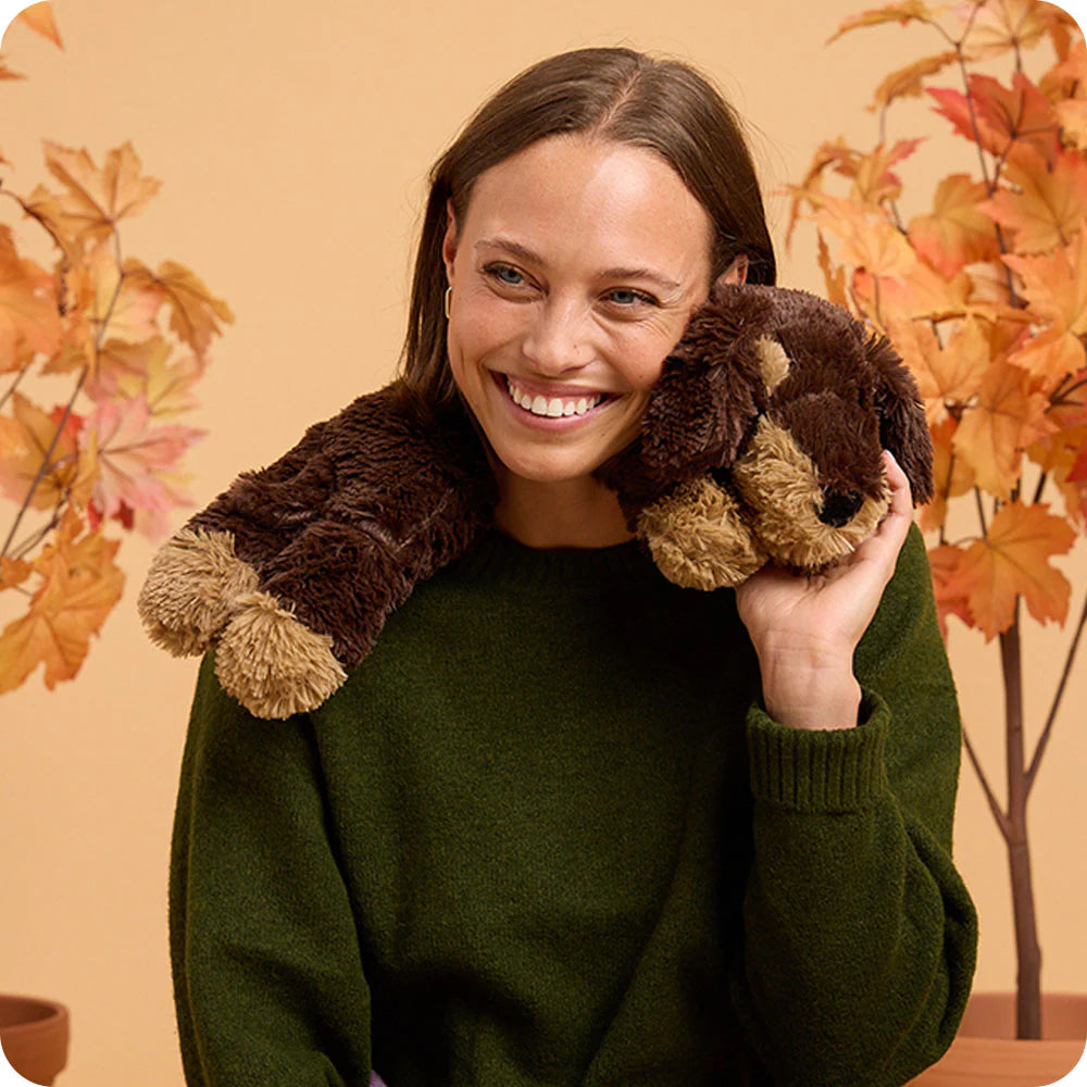 With a sweet pup face, soft paws and a long body that drapes comfortably around your neck, Dachshund Warmies Wrap is as playful as it is practical.