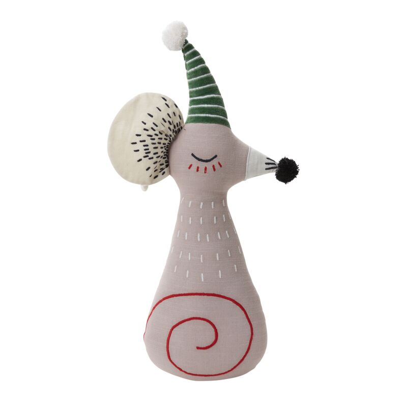 Not a creature was stirring, not even our favorite mouse, Pip. The Pip pillow features a sleepy mouse wearing a green winter cap. A pompom nose and embroidered fabric ears complete this cozy character pillow, perfect for snuggling up to on a cold winter's night.