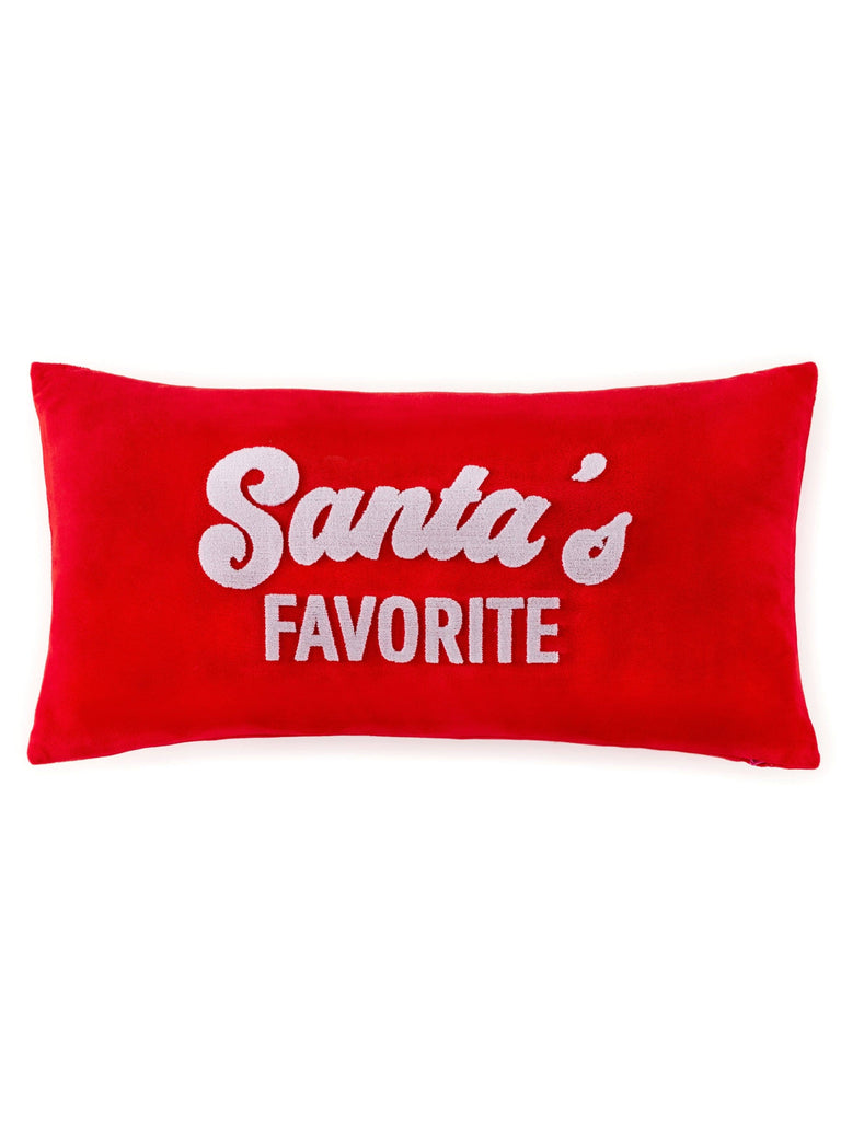 Get cozy and festive with Santa's Favorite Pillow! This red pillow features "Santa's Favorite" embroidered in white, adding a playful touch to your holiday decor. So snuggle up and add some jolly to your home this season!